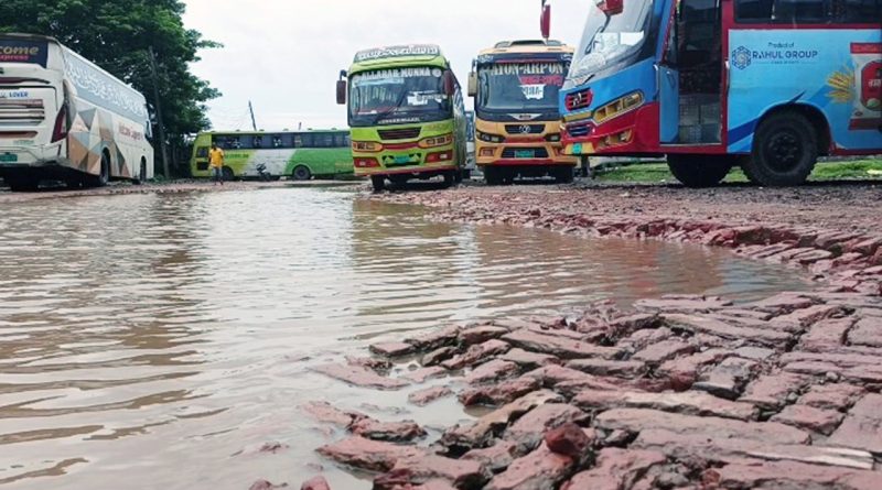 খানাখন্দে ভরা পিরোজপুর কেন্দ্রীয় বাস টার্মিনাল, দুর্ভোগে হাজারো যাত্রী